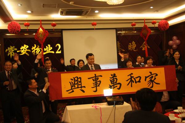 簡訊:深圳市常安物業(yè)服務(wù)有限公司于2011年1月23日下午在富邦酒店舉行《常安物業(yè)2010年度總結(jié)大會》,參加會議的主要人員有副總經(jīng)理-黃國義、副總經(jīng)理-蔡愛花、常務(wù)副總經(jīng)理-林源朋、董事長-張武。會議主要對公司在2010年度的各項(xiàng)工作進(jìn)行了匯報與總結(jié),會議指出常安物業(yè)將在2011年度加強(qiáng)精細(xì)化管理、加強(qiáng)績效的施行力度、加強(qiáng)培訓(xùn)力度、營造學(xué)習(xí)型企業(yè)、提高業(yè)務(wù)服務(wù)質(zhì)量。在發(fā)展業(yè)務(wù)方面公司將以2011年度制定的發(fā)展戰(zhàn)略為基礎(chǔ)拓寬思路、大膽創(chuàng)新、通過制定 合理機(jī)制達(dá)到持續(xù)改進(jìn)服務(wù)水平的目的。整場的會議內(nèi)容極大的鼓舞在場的每一位員工,在會議的最后公司頒發(fā)了2010年度優(yōu)秀員工獎30人、優(yōu)秀服務(wù)中心主任1人以及服務(wù)中心特別獎等。會議會議結(jié)束后,常安物業(yè)舉行了《2011年聯(lián)歡晚會》。整個晚會空前熱烈,大家在一起歡聲笑語、載歌載舞、把整場的氣氛推向了高潮。