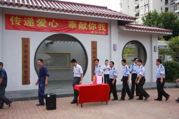 2012年9月12日前?;▓@廣場譜寫了一曲愛的樂章,常安物業(yè)全體員工為救助身患重病的同事紛紛慷慨解囊,捐款相助。常安物業(yè)一名普通的秩序維護員溫煥榮,因胃出血在近段時間已進行兩次大手術治療,至今仍在重病監(jiān)護室未脫離危險,但昂貴的治療費已經(jīng)讓本來生活就很艱難的家庭更加陷入了困境。在得知溫煥榮的情況后,常安物業(yè)在公司內(nèi)部發(fā)起倡議書,倡議得到全體員工的關注。紛紛在募捐活動中獻上一份愛心,一時間,愛的暖流匯聚了整個前?;▓@,。此次活動共得到愛心款22500元,公司慰問金10000元,總計32500元,公司董事長張武先生將款項親手交給了員工家屬,并希望本次捐款可以解決他們的燃眉之急,并代表常安物業(yè)全體員工衷心的祝愿溫煥榮同志早上康復。常安物業(yè)員工倡議愛心捐款員工踴躍捐款善款統(tǒng)計張武董事長講話張武董事長將愛心款轉交員工家屬困難員工家屬講話