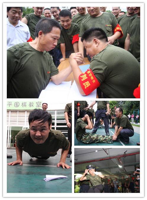 比賽分為六項(xiàng)。1、俯臥撐。2、仰臥起坐。3、蛙跳接力。4、扳手腕。5、隊(duì)列比賽。6、拔河比賽。同志們熱情高漲,軍人堅(jiān)強(qiáng)、拼搏的氣息充滿了整個(gè)比賽場(chǎng)地。每個(gè)人的心中都流露出來(lái)一種不服輸?shù)臍鈩?shì)。盡管我們已經(jīng)退伍多年,盡管我們的隊(duì)伍是臨時(shí)組建。站在了一起,站在了同一個(gè)連隊(duì),喊著我們共同的口號(hào),我們此刻就是軍人。就是一個(gè)連隊(duì)的兄弟。這就是軍人,就是偉大的中國(guó)人民解放軍。