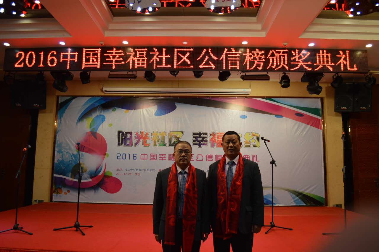 由《住宅與房地產(chǎn)》雜志主辦,物業(yè)管理微信平臺(tái)協(xié)辦的“2016中國幸福社區(qū)公信榜頒獎(jiǎng)典禮”,歷經(jīng)15天逾百萬人積極投票,于2016年12月28日分別公布了7個(gè)獎(jiǎng)項(xiàng)的獲獎(jiǎng)?wù)呒邦C發(fā)榮譽(yù)獎(jiǎng)牌。