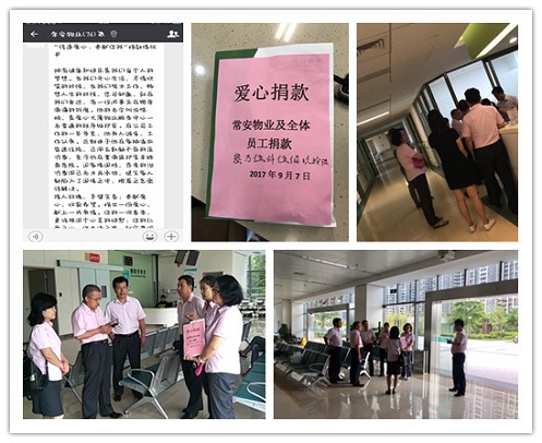 公司接到家屬消息后,非常關心,當即安排人員及工會主席前往醫(yī)院探望并送上公司的關懷及5000元的慰問金。隨即在公司內部及時組織全體員工發(fā)起了為龍曉明“傳遞愛心,奉獻你我”的捐款活動,公司上下反應迅速,踴躍捐助。截止2017年9月6日,常安物業(yè)公司及全體員工共為龍曉明籌募善款35596元。2017年9月7日上午,公司領導班子等一行人前往醫(yī)院探視,將捐款送至龍曉明的家屬手中。公司領導向家屬表達了對龍曉明及家屬的關心和慰問,并鼓勵家屬積極面對認真治療,也祝愿龍曉明能夠戰(zhàn)勝病魔,早日康復。公司工會會協(xié)助家屬通過向政府部門申請等形式,爭取獲得更多的社會扶助資金,從而減輕龍曉明家庭的經濟負擔。