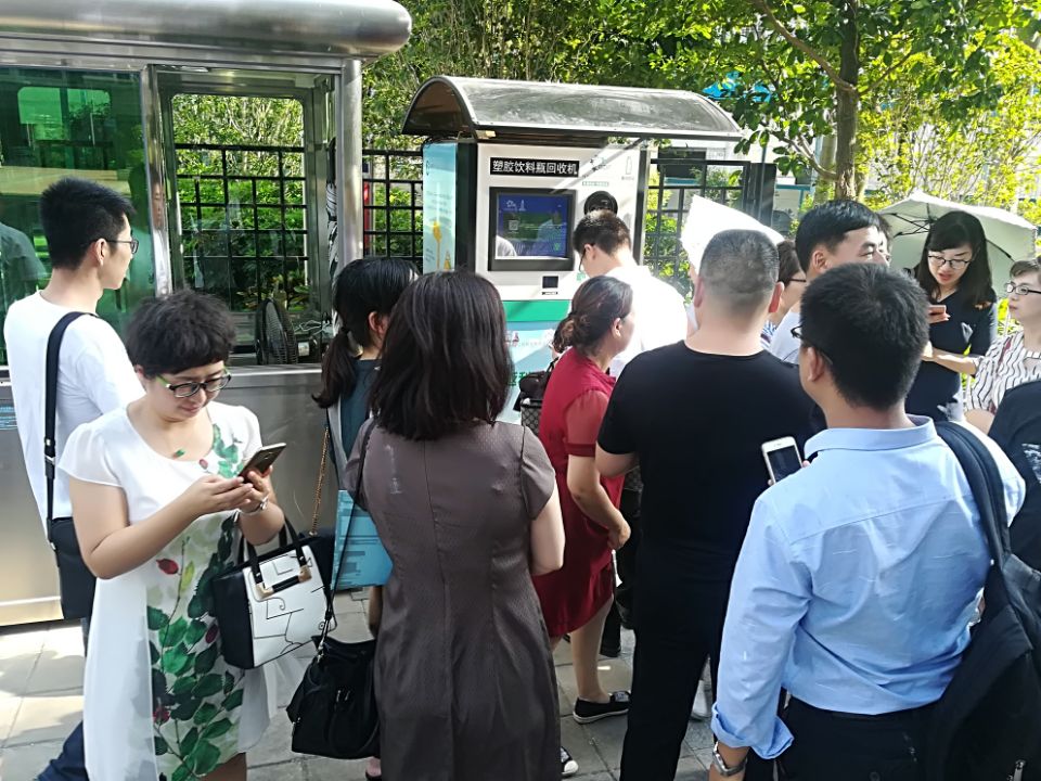 參觀垃圾分類(lèi)投放機(jī)的使用
