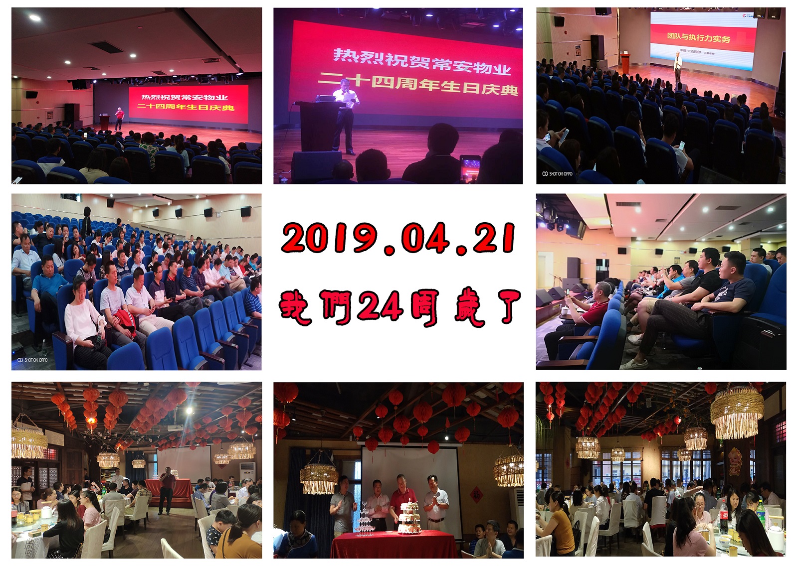 2019年4月21日,我司組織各部門(mén)、各服務(wù)中心、分公司的管理人員參加了慶祝常安物業(yè)公司成立二十四周年的慶典活動(dòng)。